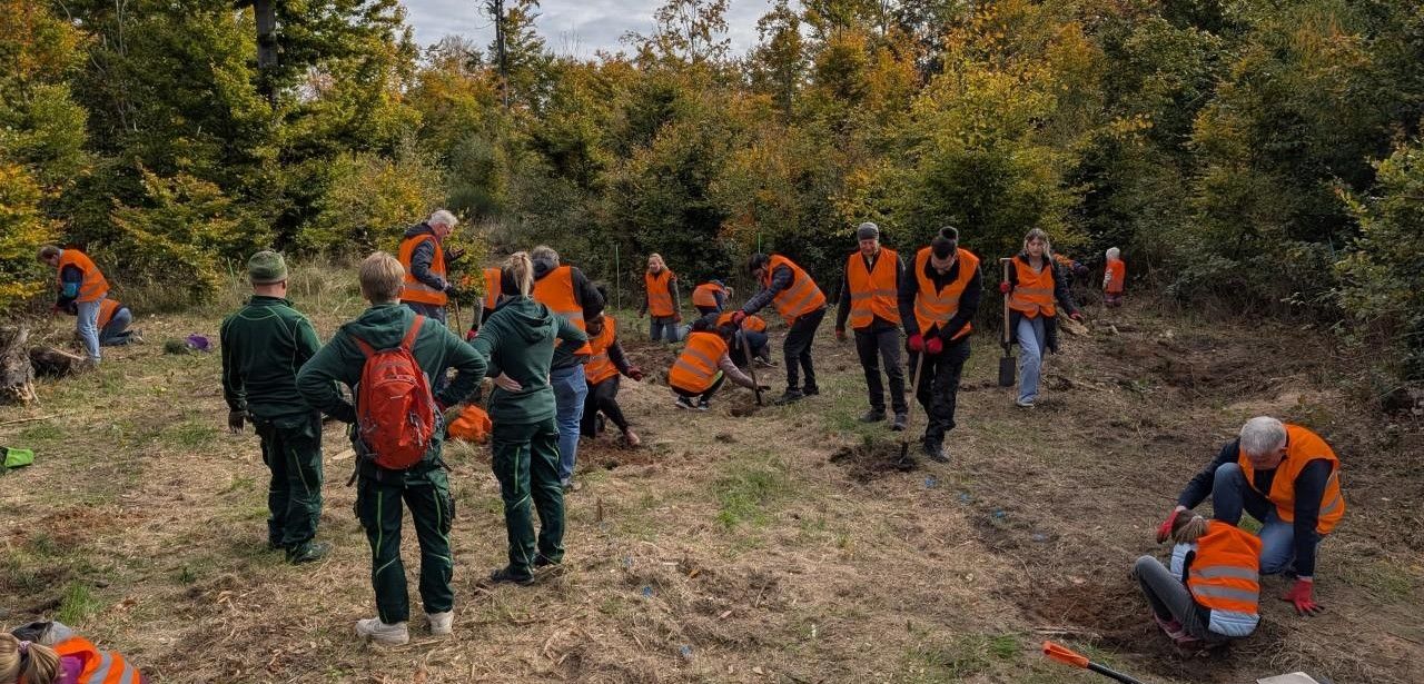 Mitarbeitende verschiedener Standorte pflanzen Bäume und stärken Umweltbewusstsein gemeinsam