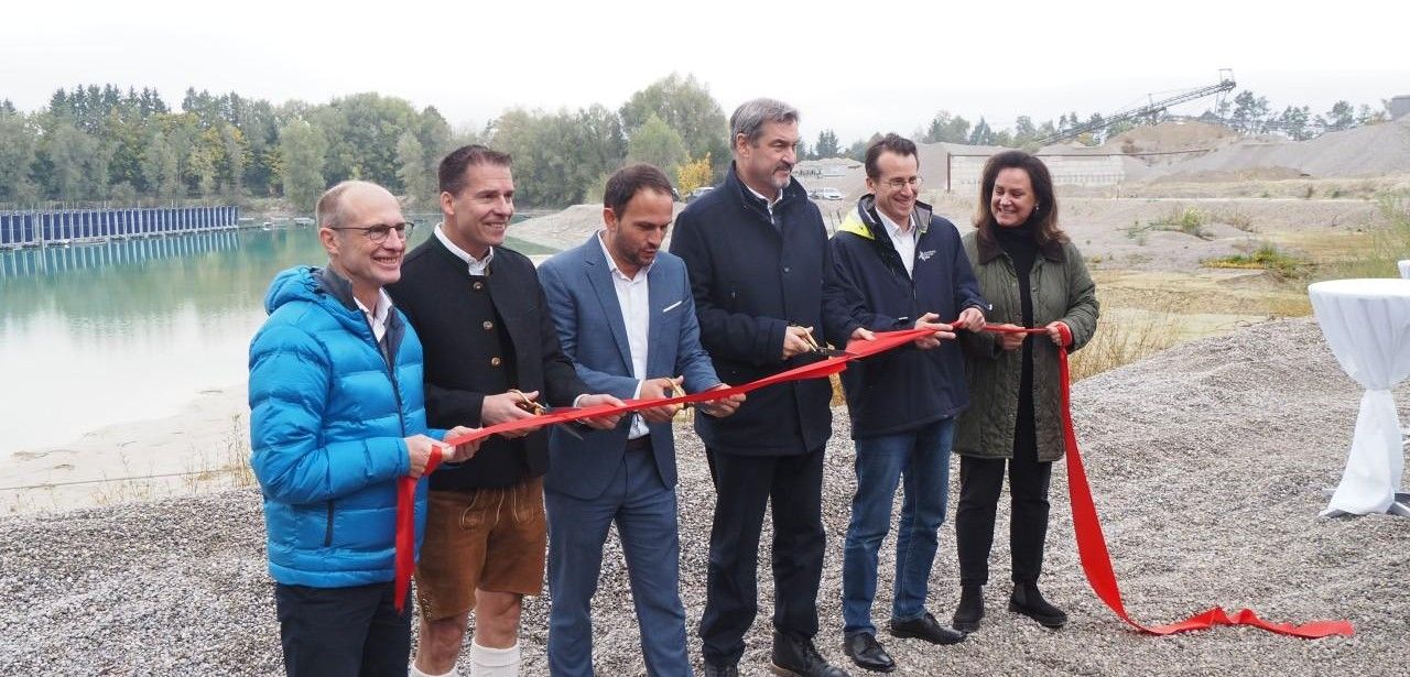 Am 10. Oktober 2025 wurde die innovative SKipp Float-Anlage im Kieswerk Jais bei Starnberg feierlich eingeweiht. Bayerns Ministerpräsident Dr. Markus Söder und Wirtschaftsminister Hubert Aiwanger wohnten dem Ereignis bei. Landrat Stefan Frey, Dr. Egon Westphal von Bayernwerk AG und Dr. Ute Eiling-Hütig ergänzten die Gästeliste. SINN Power-Geschäftsführer Dr. Philipp Sinn und Partner Gottfried Jais unterstrichen die zügige behördliche Genehmigung und Bayerns Führungsrolle in der Floating-PV-Technologie.